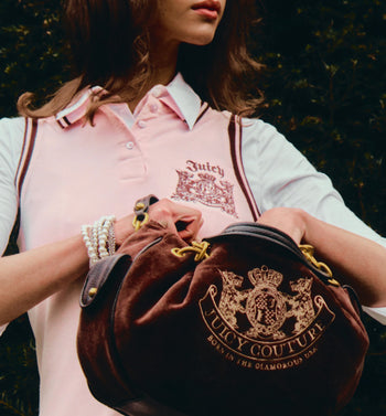 Borsa Juicy Couture in morbido velluto marrone dal design raffinato e senza tempo. Dotata di manico regolabile e tracolla removibile con catena dorata, unisce praticità e dettagli glamour. Sul davanti spicca il ricamo con stemma Juicy Couture che conferisce eleganza e carattere distintivo. Un accessorio versatile e chic, perfetto per arricchire look quotidiani e serali con un tocco sofisticato.